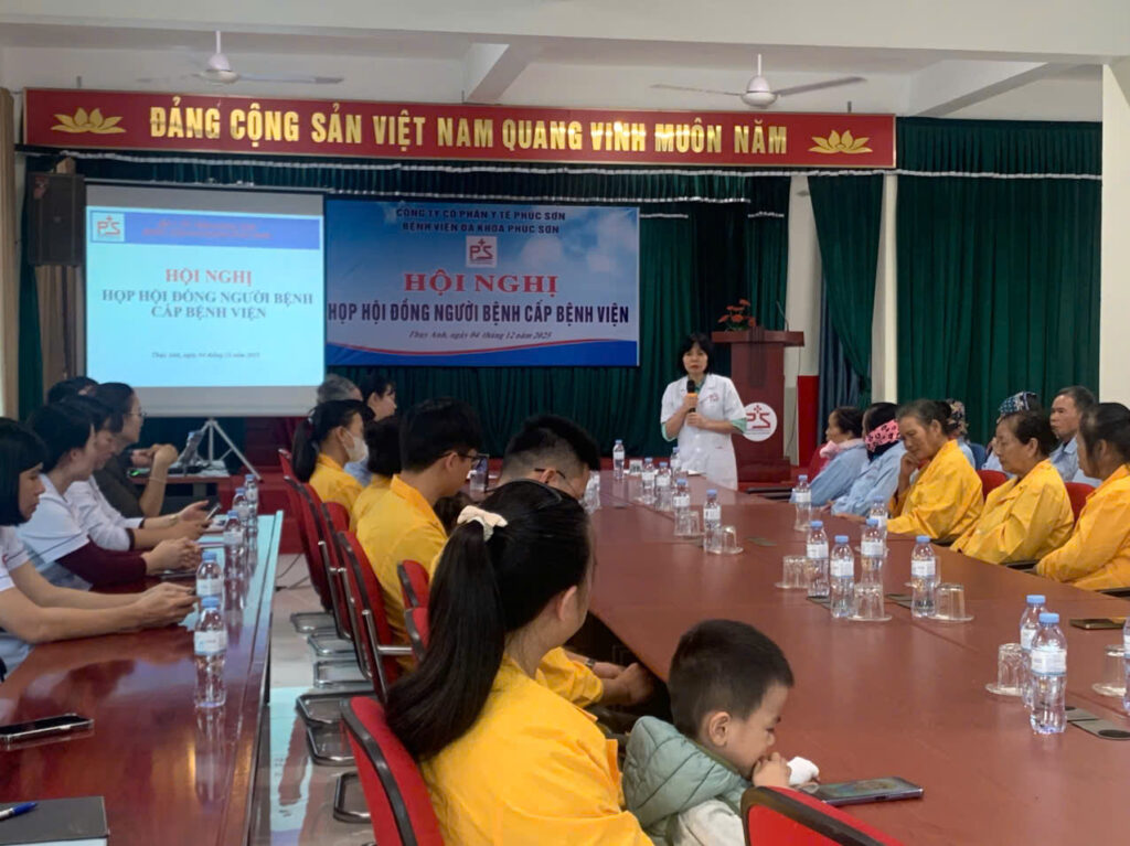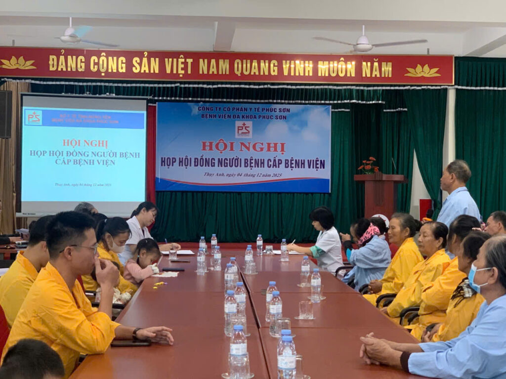 Chiều ngày 12/04/2025, Bệnh viện Đa khoa Phúc Sơn đã tổ chức họp Hội đồng người bệnh cấp bệnh viện. Đây là hoạt động định kỳ nhằm tăng cường sự đóng góp và nâng cao chất lượng dịch vụ chăm sóc y tế và đảm bảo quyền lợi của người bệnh. Cuộc họp có sự tham dự của Lãnh đạo Bệnh viện, các phòng chức năng và đại diện người bệnh, người nhà bệnh nhân đang điều trị tại bệnh viện.